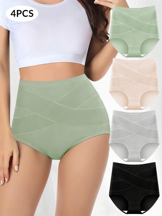 High Waist Underwear Butt Lift Full Briefs Set Tummy Control 4 Pack Panties Knickers for Womens