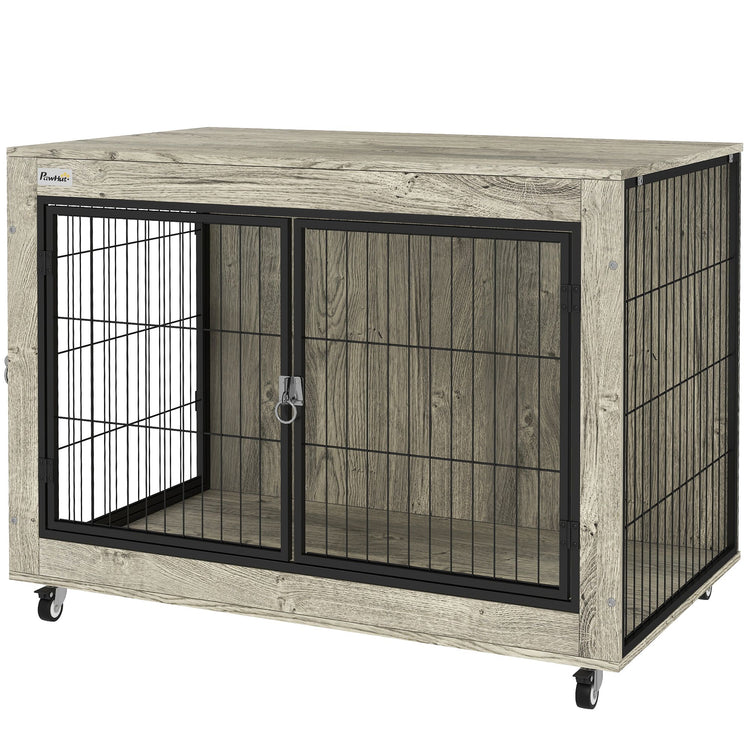 Discover the PawHut furniture dog crate, a stylish multitasker that doubles as a side table! Enjoy the convenience of swapping the side door to fit any space while the tabletop offers a chic spot for your decor. It features five wheels for easy movement, designed with mobility in mind, ensuring your large furry friend stays comfortable and secure in a ventilated, cozy spot.